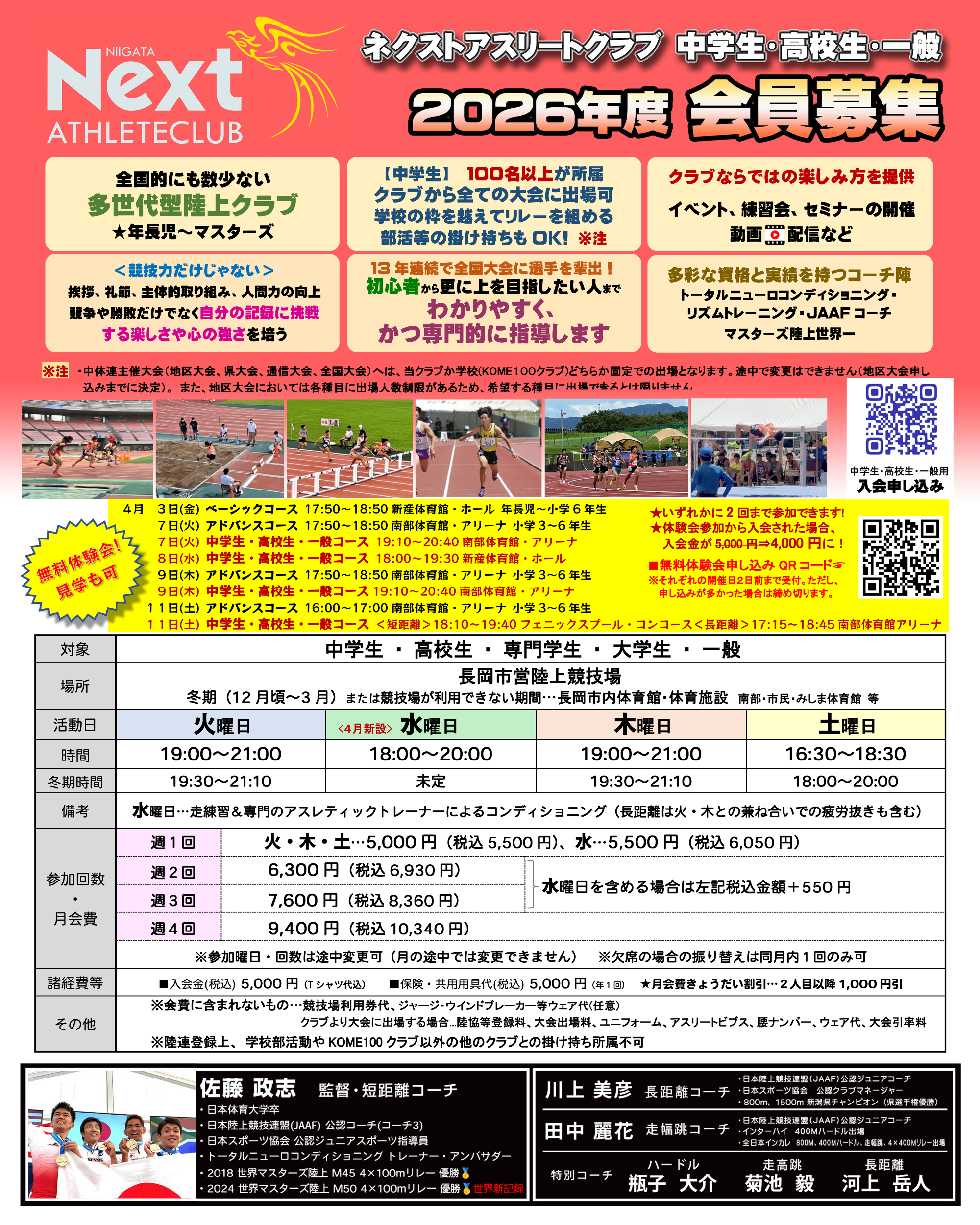 ・ネクストアスリートクラブ生…1人 1,000円